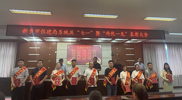 6月26下午,在新乡市住建局系统庆“七一”暨“两优一先”表彰大会上,登录入口党建工作再获表彰。