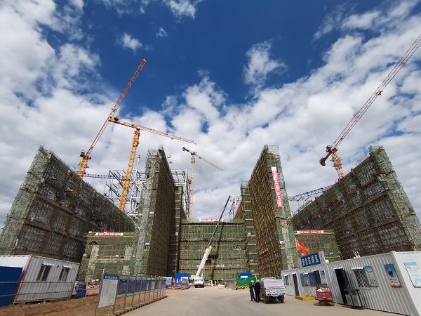 华能电力工程部榆能杨伙盘煤电一体化电厂项目1#、2#主厂房顺利封顶